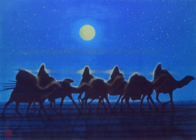 アフガニスタンの砂漠を行く(部分)